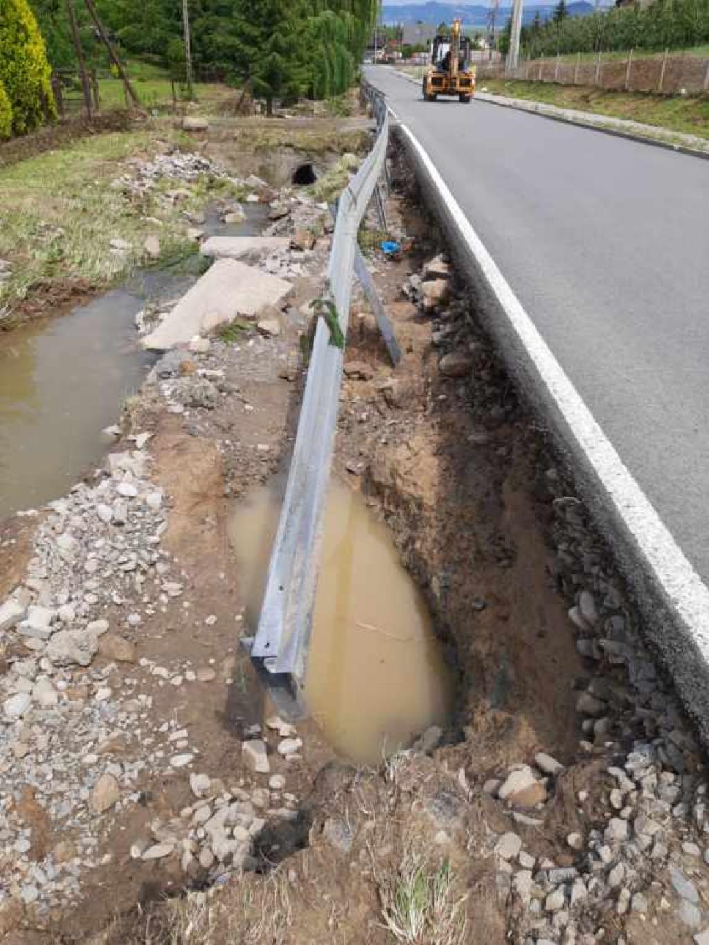 - m. Tęgoborze gm. Łososina Dolna - zalane centrum miejscowości oraz droga krajowa,