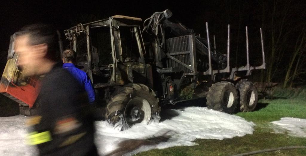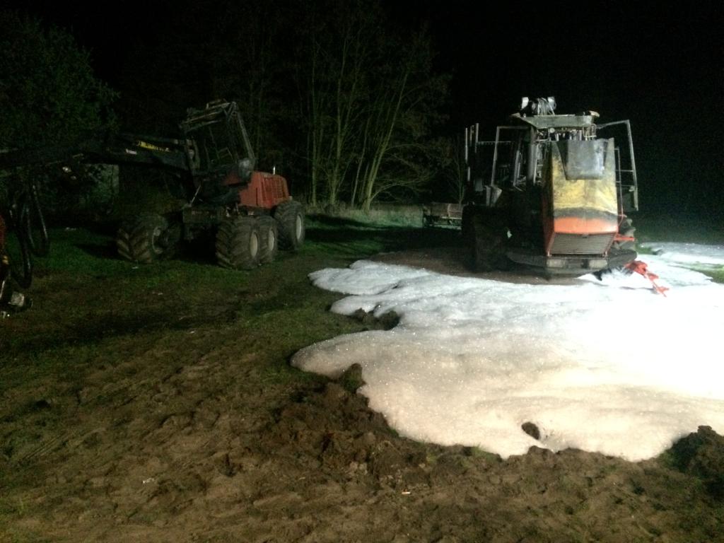Specjalistyczny sprzęt do wyrębu lasu o wartości 1,5 mln zł został podpalony w miejscowości Tokarzew k. Ostrzeszowa w Wielkopolsce we wtorek 12 kwietnia br. o 3 nad ranem.