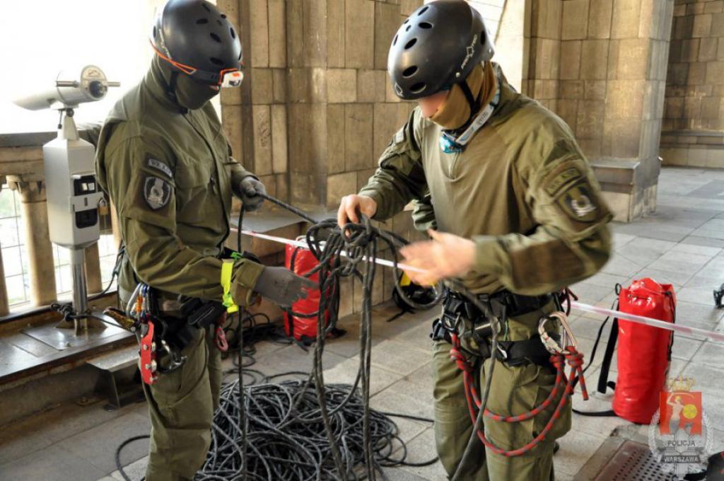 Funkcjonariusze Wydziału Realizacyjnego Komendy Stołecznej Policji wspólnie z żołnierzami Oddziału Specjalnego Żandarmerii Wojskowej oraz z Grupą Ratownictwa Wysokościowego Państwowej Straży Pożarnej w Łodzi, wzięli udział w ćwiczeniach wysokościowych na ścianie Pałacu Kultury i Nauki. Ćwiczenia były związane z przygotowaniem do Szczytu NATO, Światowych Dni Młodzieży oraz wizyty Papieża Franciszka.