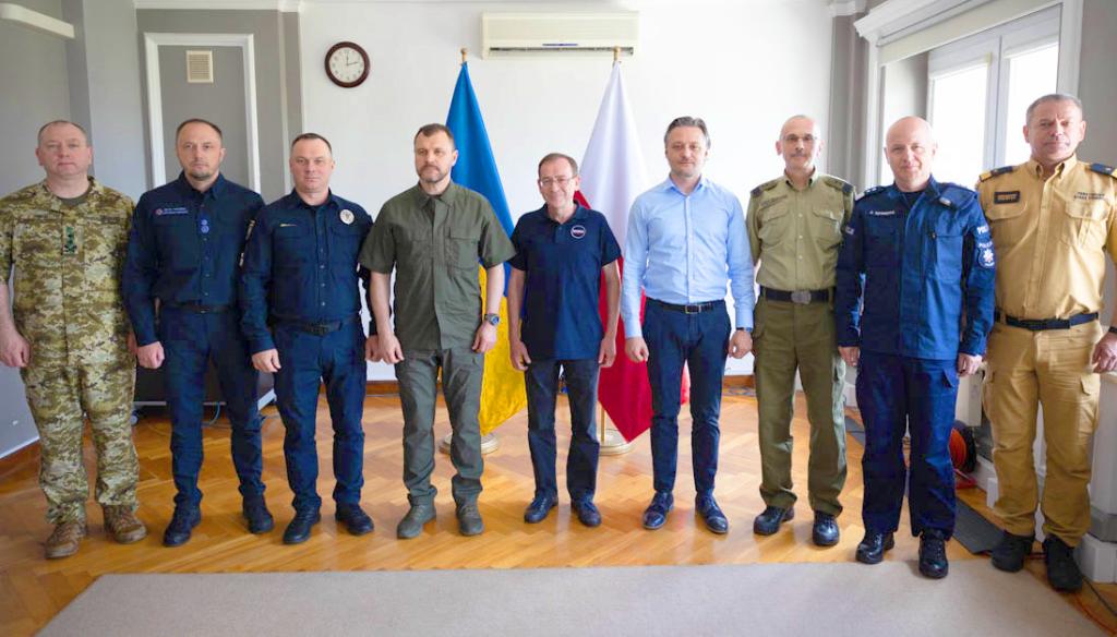 26 czerwca br., w Rzeszowie odbyło się spotkanie ministrów Mariusza Kamińskiego oraz Ihora Klymenki. Szefowie resortów spraw wewnętrznych Polski i Ukrainy rozmawiali m.in. o wsparciu sprzętowym dla ukraińskich służb mundurowych. W spotkaniu wzięli także udział wiceminister Bartosz Grodecki oraz komendanci Policji, Straży Granicznej oraz Państwowej Straży Pożarnej.