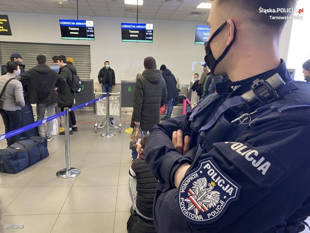 Liczba osób, która do tej pory odleciała z Międzynarodowego Portu Lotniczego Katowice – Pyrzowice, liczona jest już w tysiącach. Codziennie kilkusetosobowe grupy przebywają na terminalu lotniska w oczekiwaniu na swoje samoloty. Obywatele krajów wschodu, takich jak Uzbekistan, Pakistan, Kazachstan i Azerbejdżan pragną wrócić do swojej ojczyzny. Nad ich bezpieczeństwem przez całą dobę czuwają tarnogórscy policjanci.