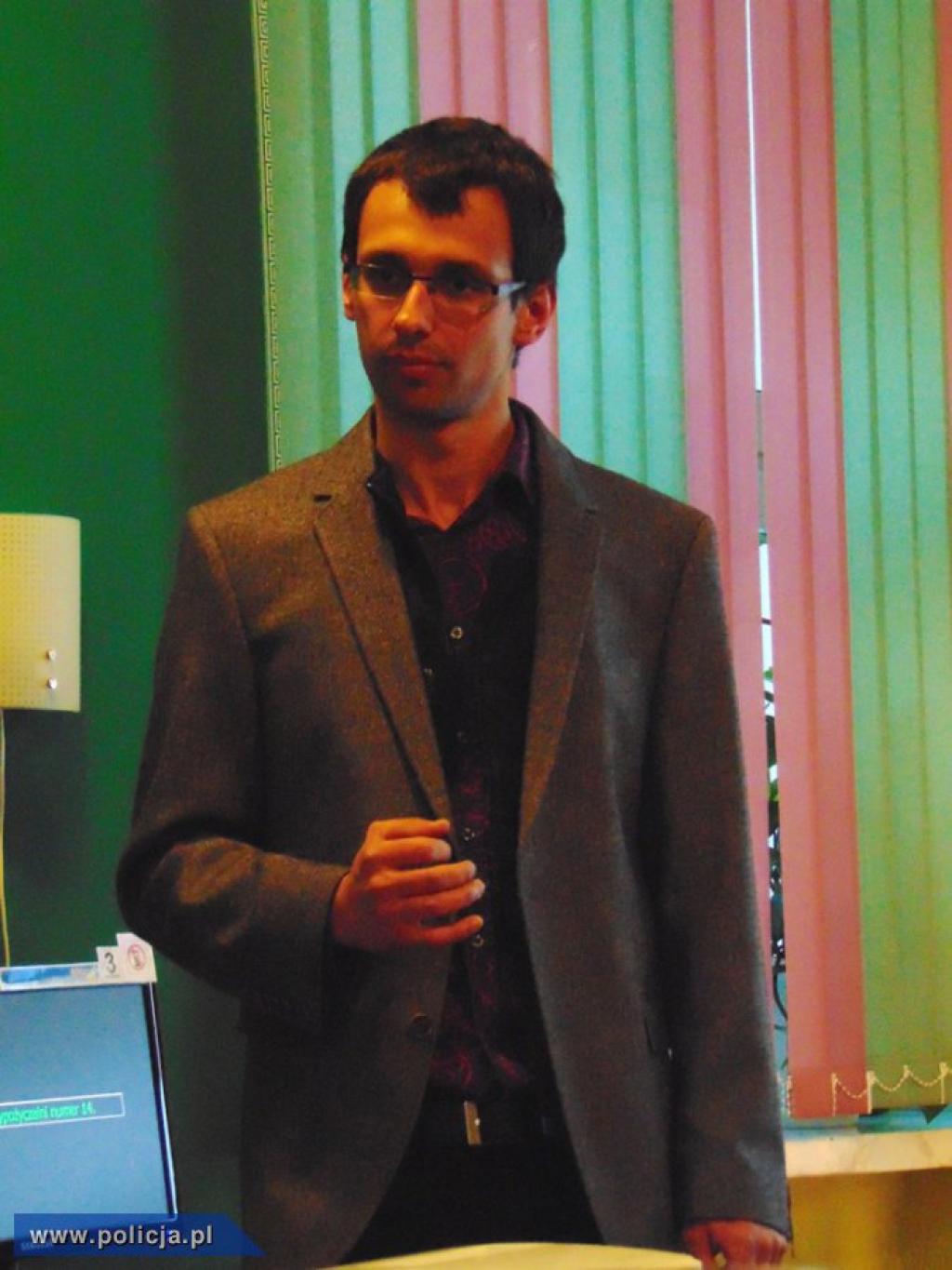 Mężczyzna ma około 180 - 185 cm wzrostu, ciemną karnację. Sylwetka szczupła. Może nosić okulary.