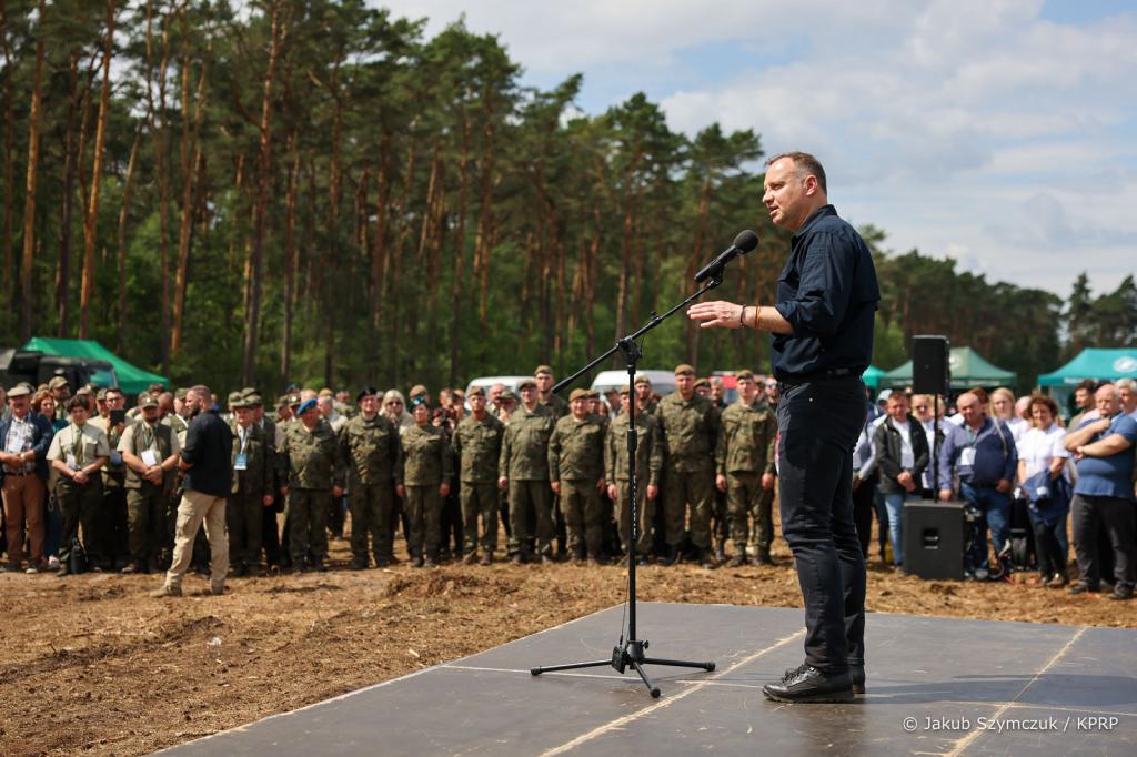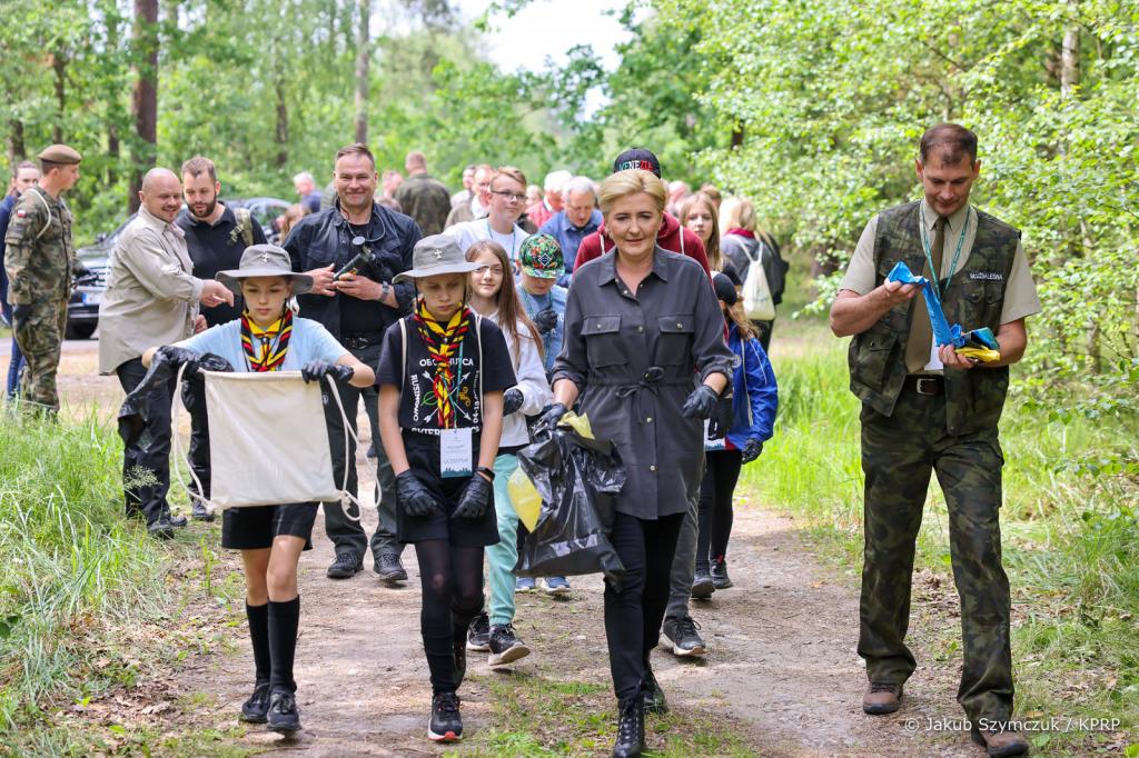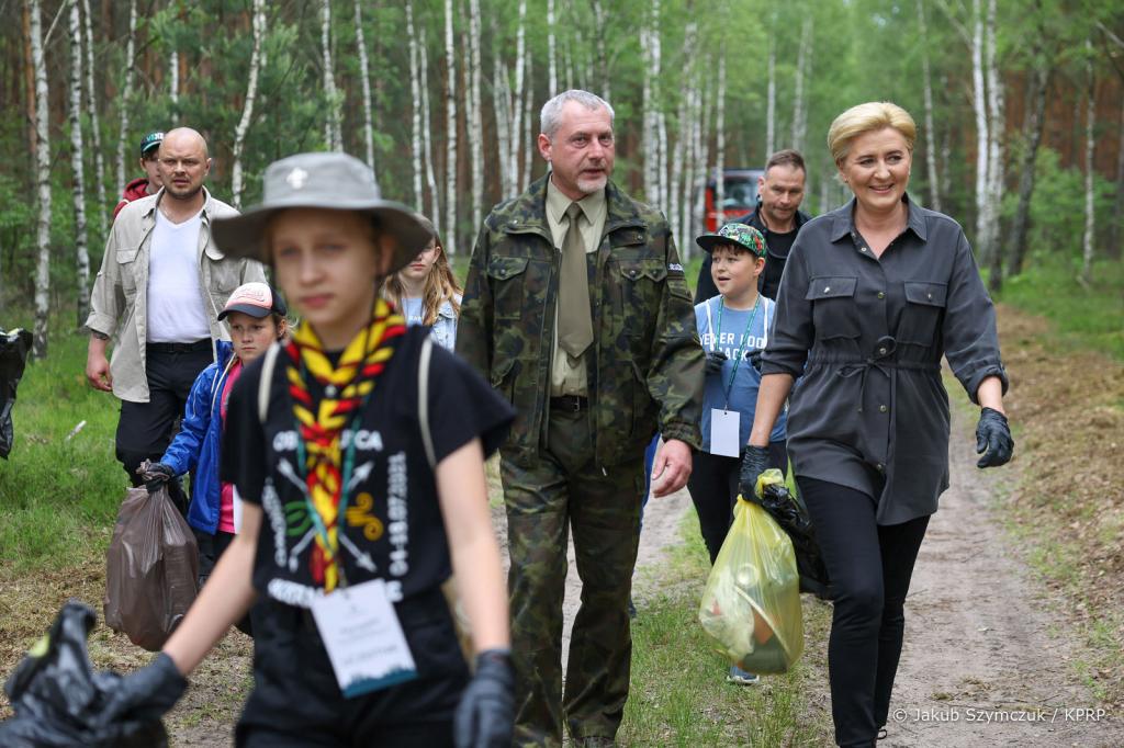 Prezydent i Pierwsza Dama wraz z uczniami, harcerzami, członkami Ligi Ochrony Przyrody, żołnierzami Wojsk Obrony Terytorialnej oraz leśnikami posprzątali fragment Puszczy Białej.
