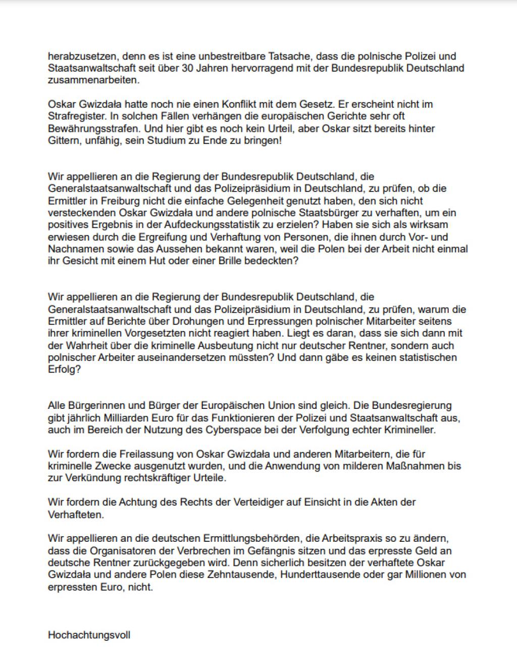 Nie wiemy, czy ambasador Republiki Federalnej Niemiec w Polsce uszanuje międzynarodowe standardy związane z przyjmowaniem petycji. Dlatego już teraz prezentujemy całość tego dokumentu publicznie zarówno w języku polskim, jak i niemieckim.
