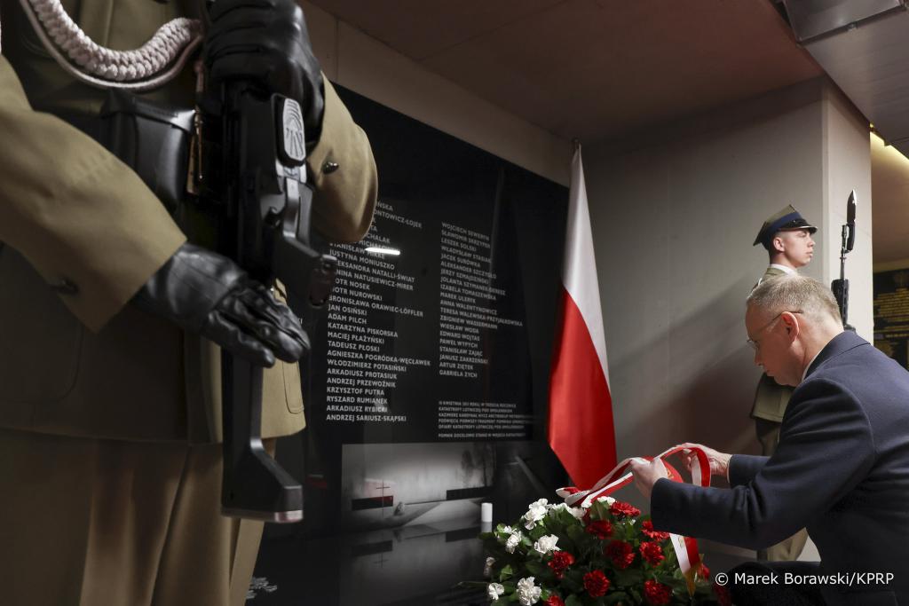 – Dziękuje wszystkim, którzy pamiętają i dzisiaj oddadzą hołd tym wielkim postaciom naszej sceny politycznej, naszego życia społecznego, wielkim Polakom i patriotom, którzy wtedy – wraz z Prezydentem Lechem Kaczyńskim, Jego Małżonką i Prezydentem na uchodźctwie Ryszardem Kaczorowskim – lecieli po to, żeby oddać hołd polskim oficerom pomordowanym w Katyniu, po to, by po raz kolejny własna osobistą obecnością zadać kłam propagandzie sowieckiej, która przez lata realizowała tzw. kłamstwo katyńskie – powiedział Andrzej Duda w czasie wypowiedzi dla mediów.