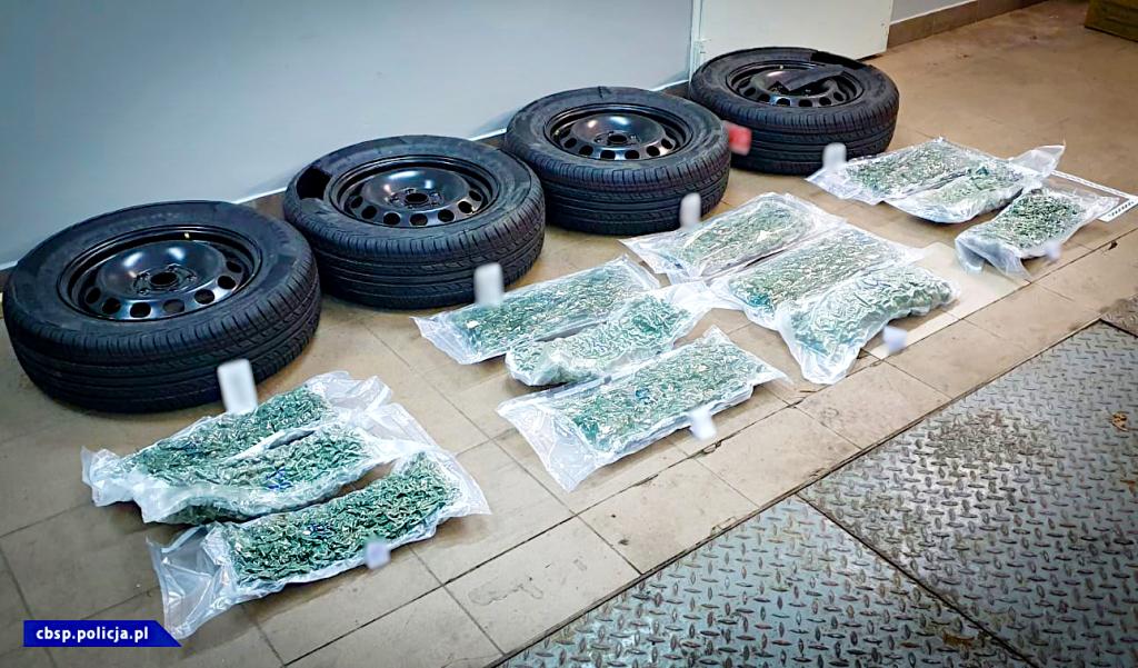 CBŚP wspólnie z NOSG przejęło prawie 7 kg marihuany pochodzącej z przemytu. Narkotyki były ukryte w kołach.