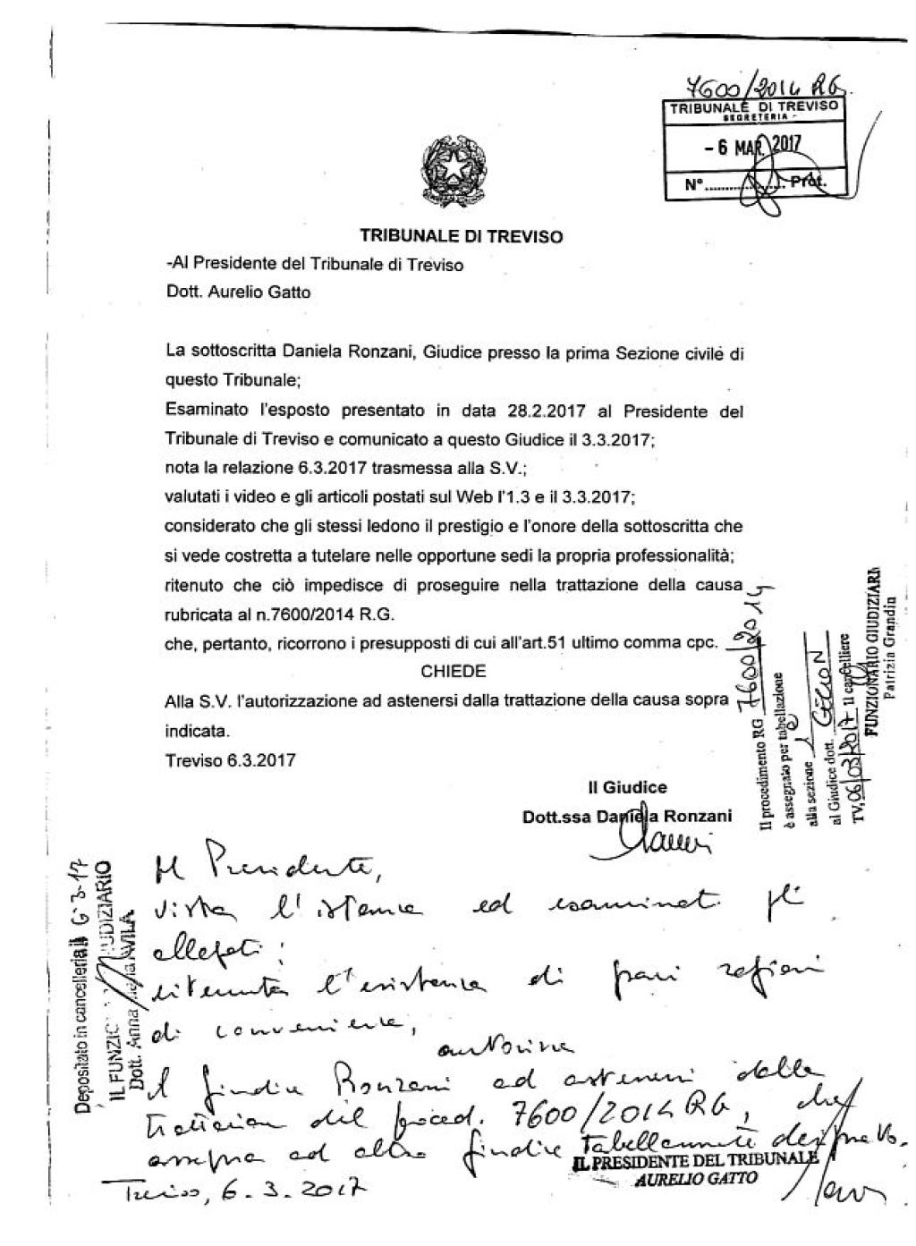 [VIDEO] Kolejny skandal z udziałem sędzi Daniela Ronzani z Treviso! Przyjmuje przed rozprawą adwokata, który na nią krzyczy. A potem podejmuje decyzje koszmarne dla Polki walczącej o uratowanie życia swojego dziecka!