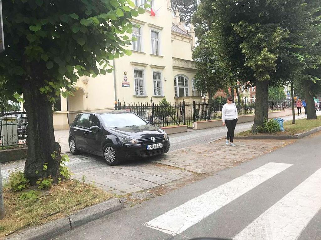Ale by wjechać na teren Prokuratury Rejonowej w Ząbkowicach Śląskich, która prowadzi to postepowanie, też musieliśmy wjechać po pasach dla pieszych w podwórze Prokuratury. To samo musiała zrobić Bożena Zalewska by wjechać swoim autem, bo na wprost bramy wjazdowej do Prokuratury jest szerokie przejście dla pieszych oznaczone zebrą.
