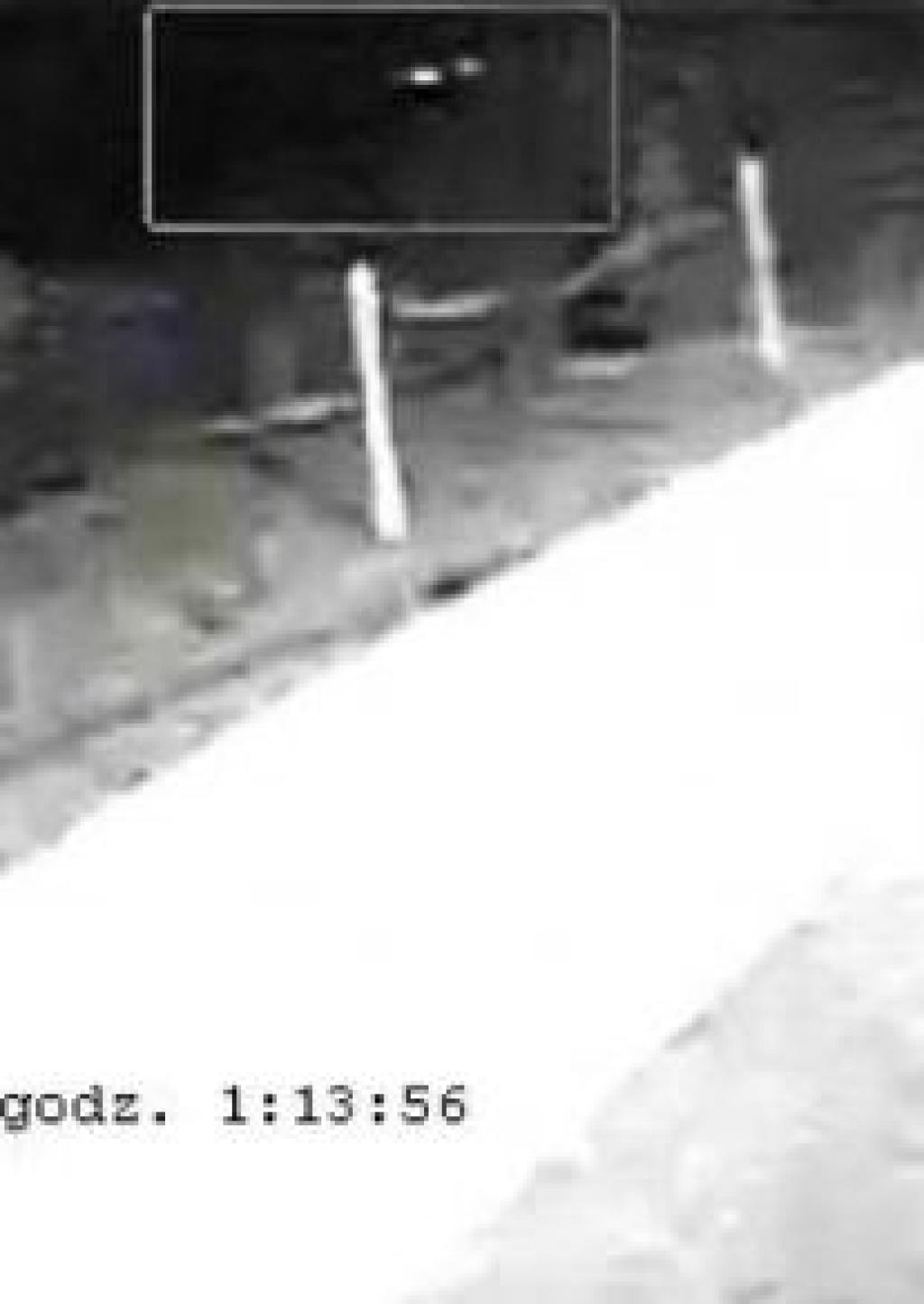 Pierwszy obraz pochodzi z godziny 1:13:56. Widać na nim jak 3 osoby wyszły z krzaków znajdujących się na wprost ścieżki wyprowadzającej z dyskoteki Riviera w Prusicach i przemieszczają się w kierunku pola.