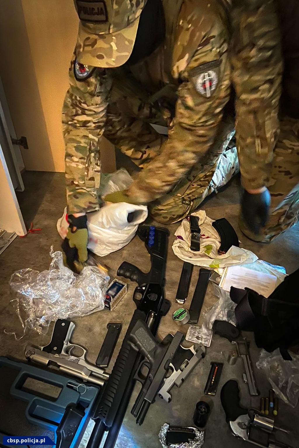 Podczas akcji policjanci zabezpieczyli broń palną, amunicję, maczetę, bagnet, noże oraz narkotyki. Dwóch mężczyzn podejrzanych jest o rozbój z użyciem niebezpiecznego narzędzia wobec ochroniarza i zabór pieniędzy z pomieszczeń klubu sportowego, któremu kibicowali.